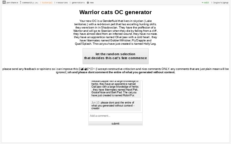 ― perchance warrior cats oc generator.